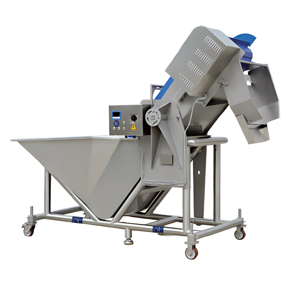 Toplu yükleyici, kovalı kaldırıcı Hiwell ve diğer ekipmanlarla iyi bağlantı kurmak için tasarlanmıştır. Özellikle kemiksiz ve kemikli ürünler için et işleme prosedürleri optimize edilmiştir. Örneğin, marine edilmiş tavuk nuggetları ve tavuk filetoyu eşit şekilde dağıtarak hamur kaplama ve tambur ekmekleme makinelerine aktararak iş gücünden tasarruf sağlar.
