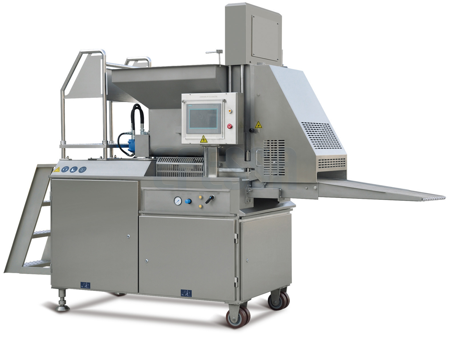 Otomatik çoklu şekillendirme makinesi IV, II, et doldurma, şekillendirme ve çıkarma gibi çeşitli prosedürleri otomatik olarak gerçekleştirebilir ve hamur, ön tozlama, kızartma, pişirme, anında dondurma ve paketleme makinesine bağlandığında tam otomatik bir hazır gıda hattını birleştirebilir.