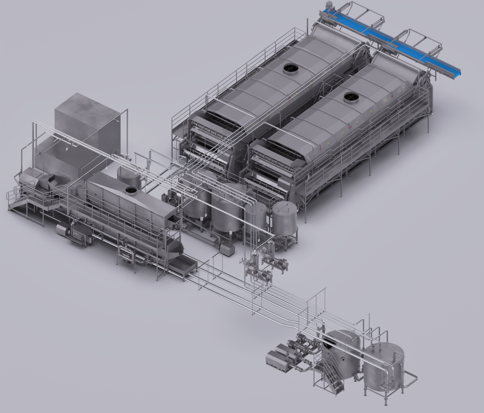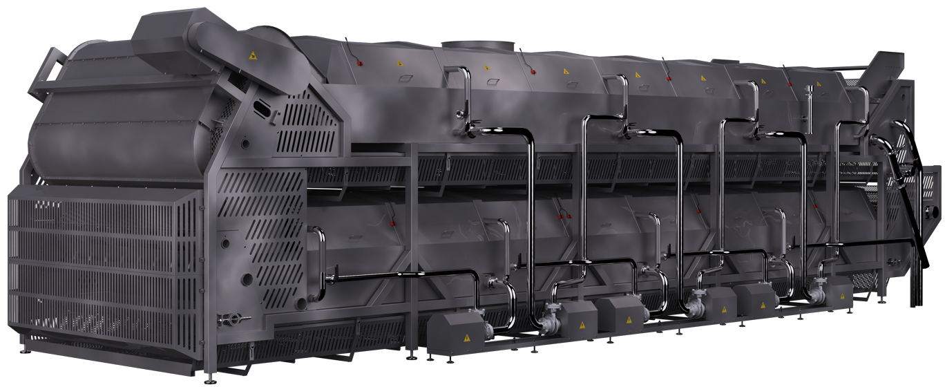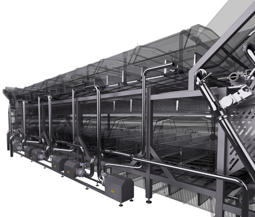Pastörizasyon Sistemi, seri olarak bağlanmış iki su tankından oluşan, ürünü konveyörler kullanarak besleyen, aktaran ve boşaltan bir sistemdir. Yüksek hızlı su dolaşımı daha fazla çalkantı yaratır ve verimli ısı alışverişi sağlar.